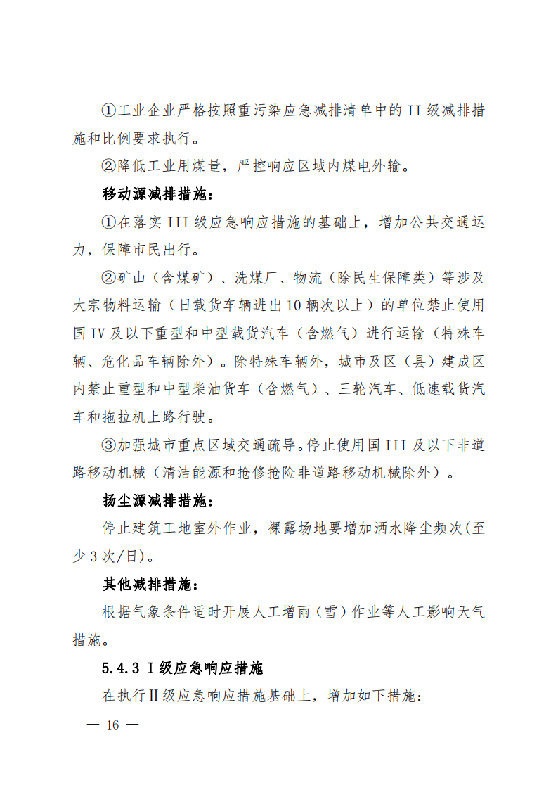 在Ⅱ級應急響應措施的工業減排措施中提到,降低工業用煤量,嚴控響應區域內煤電外輸。